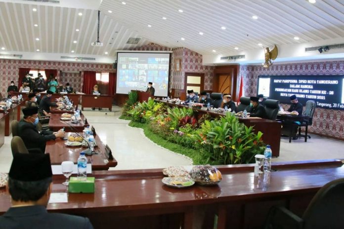 Dalam rangka HUT Kota Tangerang ke 28, DPRD Kota Tangerang gelar Rapat Pripurna Istimewa berlokasi di ruang sidang DPRD Gedung Pusat Pemerintahan Kota Tangerang pada, Minggu (28/2).