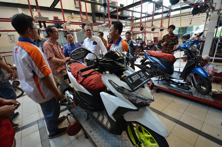 Pada Jumat (08/09) pekan lalu, Deputy Menteri Koordinator Perekonomian, Jonson Tampubolon bersama tim hadir lihat langsung proses kerja pelajar – pelajar SMK Binaan Honda yang sedanag melakukan training di AHASS (Astra Honda Authorized Service Station) Wahana HondaGunung Sahari, Jakarta Pusat. Pada kunjungan ini, selain melihat kondisi kerja pelajar tersebut, Jonson sempat bertanya langsung kepada salah satu siswa yang sedang memperbaiki motor konsumen.