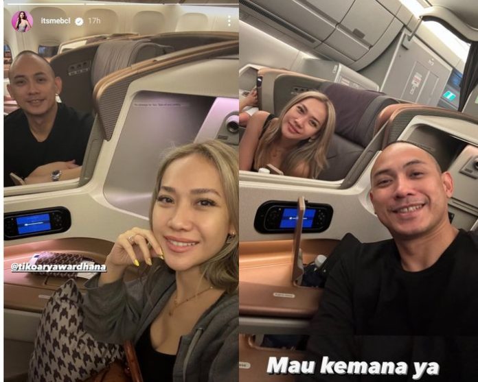 Sepasang suami istri yang masih dimabuk asmara itu terlihat sedang berada di dalam pesawat. Keduanya duduk di kursi pesawat kelas bisnis sembari menampilkan ekspresi bahagia.