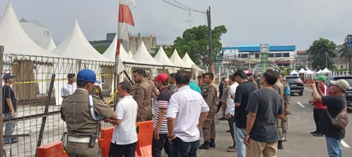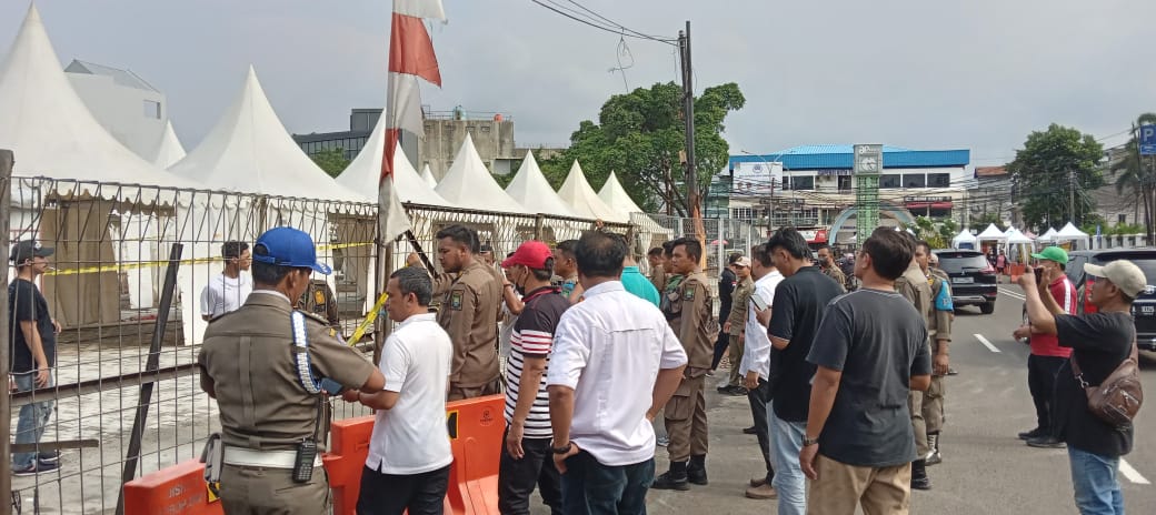 Katakota.com- Pemerintah Kota (Pemkot) Tangerang melalui Satuan Polisi Pamong Praja (Satpol PP) melakukan tindakan penyegelan, terhadap lahan yang digunakan tanpa izin, yaitu Taman Jajan Pasar Lama, yang terletak persis di depan Pendopo Bupati Tangerang Pasar Lama, Jumat (10/3/23).
