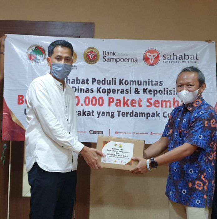 Salah satu upaya meringankan beban masyarakat yang terdampak covid-19 datang melalui Koperasi Simpan Pinjam (KSP) Sahabat Mitra Sejati (SMS) dan Bank Sampoerna. Bekerjasama dengan Dinas Perindustrian, Perdagangan, Koperasi dan UKM Kota Tangerang paket bantuan sembako disalurkan melalui Polres Metro Tangerang.