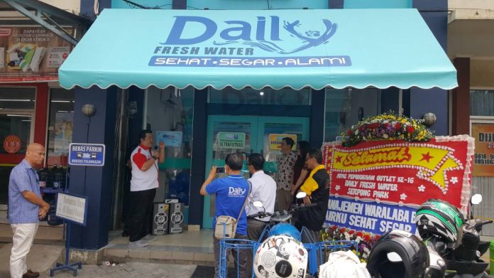 “Sejak 2017 silam saya telah membuka satu gerai usaha air dengan merek waralaba daily fresh water di Serpong park dengan harga yang terjangkau 7000 rupiah per galon,”ungkap Edy Sulistio di Tangerang, Selasa (20/4).