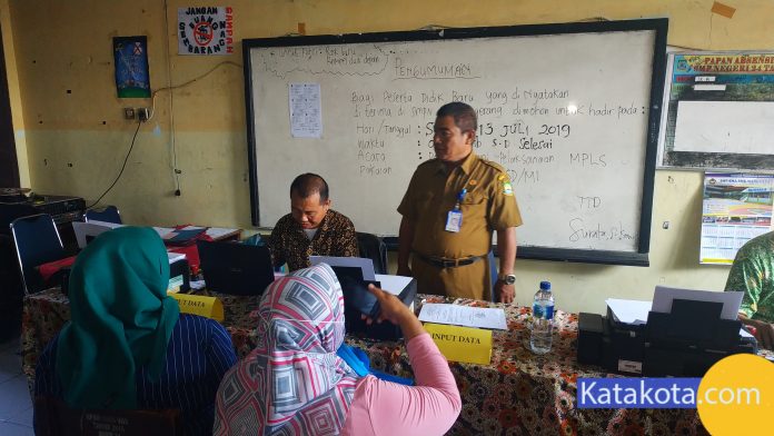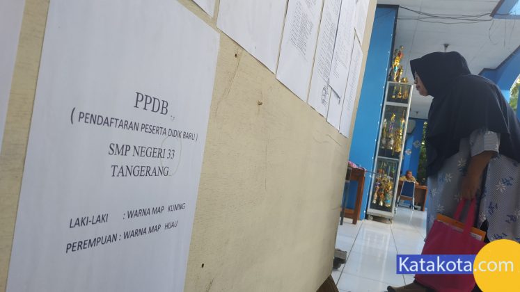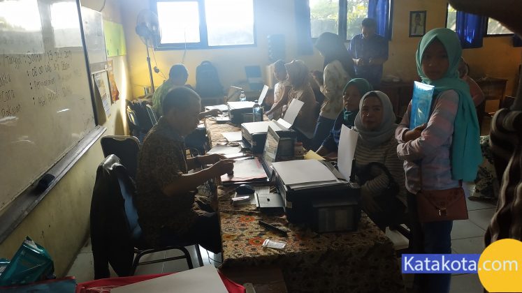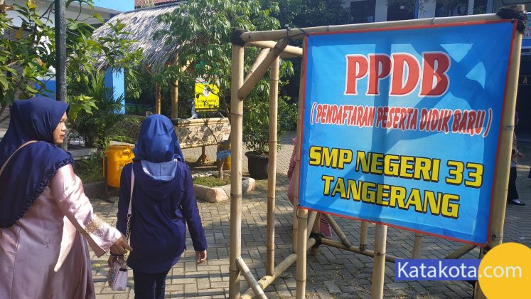 Katakota.com, -Suasana tahapan pendaftaran ulang pada Penerimaan Peserta Didik Baru (PPDB) 2019 di SMP Negeri 24 Kota Tangerang dan SMP 33 Kota Tangerang yang berada di satu area, Senin (8/7). Sejauh ini pendaftaran ulang berjalan dengan lancar dan tertib, serapan calon peserta didik baru telah mencapai 95 persen. Foto : Fajrin/Katakota.com.
