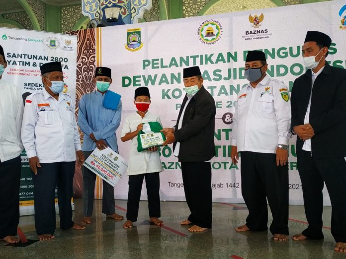 Tangerang – Sebagai bentuk rasa syukur memperingati hari jadi Kota Tangerang ke 28, Badan Amil Zakat Nasional (Baznas) Kota Tangerang membagikan santunan kepada 2.800 anak yatim dan dhuafa. Penyerahan santunan dilakukan secara simbolik kepada 13 anak perwakilan Kecamatan oleh Ketua Baznas Kota Tangerang HM. Aslie Elhusyairy di masjid raya Al-Azhom, Tangerang, Minggu (28/2).