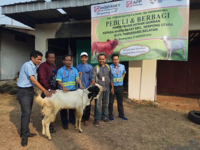 Tangsel, Katakota.com -PT Indah Kiat Pulp and Paper Tangerang Mill serahkan hewan kurban kepada Kelompok Kerja Wartawan Harian Tangsel. Selain itu pendistribusian ke lingkungan sekitar dan beberapa instansi dengan total 10 sapi dengan bobot mencapai 500 kilogram serta 8 kambing.