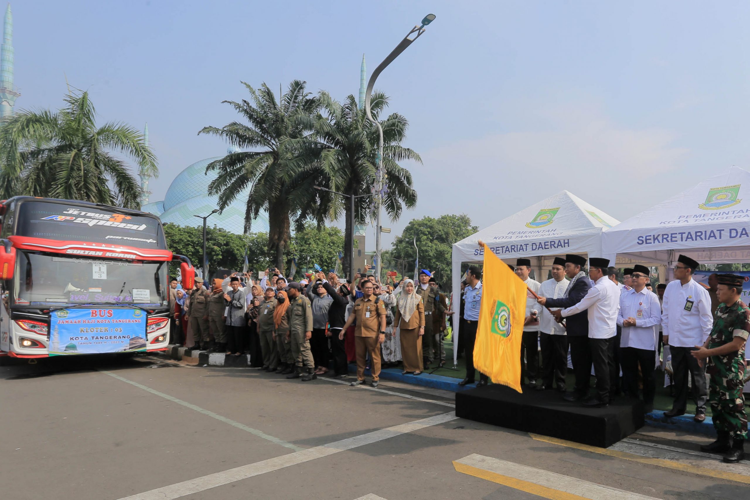 Katakota.com- Wali Kota Tangerang, H. Arief R. Wismansyah, bersama dengan Penjabat (Pj) Gubernur Banten Al Muktabar, melepas keberangkatan 383 jemaah calon haji kloter tiga nasional atau kloter pertama Provinsi Banten di Masjid Al Azhom.
