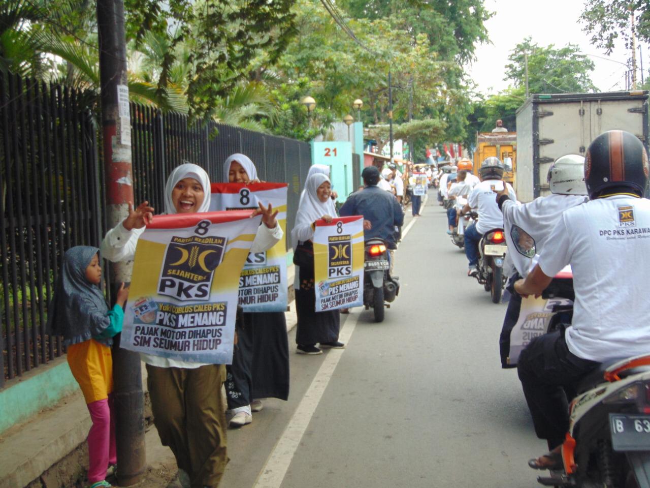 Bukan hanya kader, berdasar keterangan kader dilapangan ternyata banyak juga simpatisan yang bergabung di aksi ini. Mereka membawa banner flashmob bertuliskan logo PKS nomer 8 serta tulisan “PKS Menang, SIM Seumur Hidup, Pajak motor gratis”.