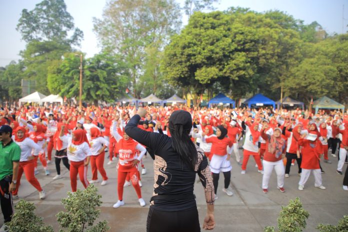 Katakota.com- Wali Kota Tangerang Arief Wismansyah dan Wakil Wali Kota Tangerang H.Sahrudin, bersama ratusan warga dari berbagai kalangan usia secara tumpah meriah mengikuti senam sehat kemerdekaan di Kecamatan Cipondoh.