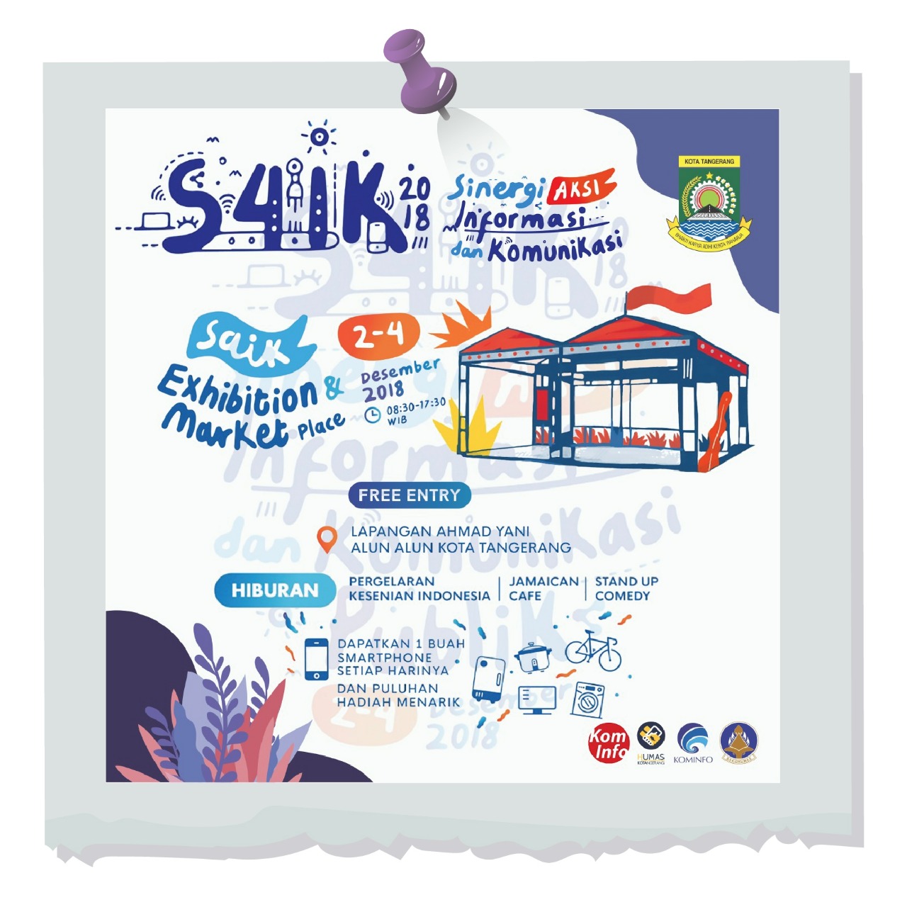 Tangerang, Katakota.com– Pemerintah Kota Tangerang ditunjuk oleh Kementerian Komunikasi dan Informatika (Kemenkominfo) untuk menjadi tuan rumah Sinergi Aksi Informasi dan Komunikasi (SAIK) pada 2-4 Desember 2018. Dalam pertemuan yang mengambil tema “Sinergi Indonesia Menuju Era Komunikasi 4.0” ini, akan dihadiri sebanyak 2570 peserta dari 34 Propinsi, 416 Kabupaten dan 94 Kota di Indonesia.