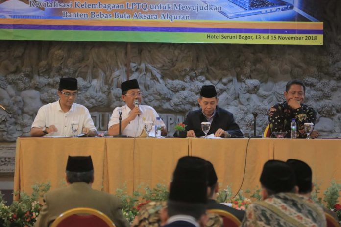 Tangerang, Katakota.com– Kota Tangerang siap menjadi tuan rumah dan menyambut dewan juri serta kafilah yang akan berlaga di MTQ XVI Tingkat Provinsi Banten Tahun 2019. Hal ini disampaikan Wakil Walikota Tangerang H. Sachrudin saat memaparkan materi kesiapan Kota Tangerang yang ditunjuk sebagai tuan rumah dalam Rapat Kerja Daerah (Rakerda) VIII Lembaga Pengembangan Tilawatil Qur’an (LPTQ) Banten Tahun 2018, yang bertempat di Hotel Seruni Puncak Bogor, Jawa Barat, Rabu (14/11).