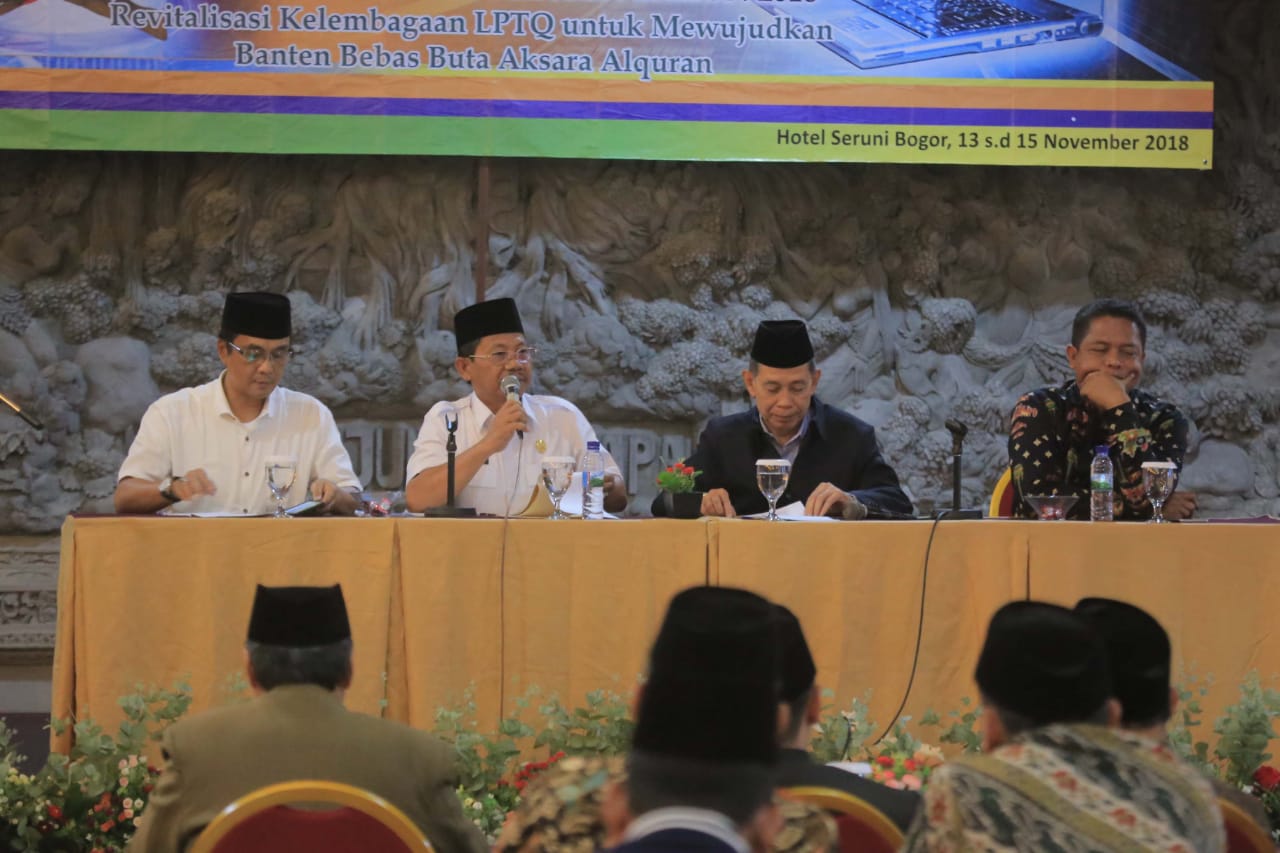 “Tujuan pemerintah sama dengan masyarakat yaitu mencapai kebahagiaan dunia dan akhirat,” ujar Wakil. “Mudah-mudahan seluruh peserta bisa saling berkompetisi secara sportive dan fairplay itu yang harus ditunjukkan. Do’akan kita sukses dan bisa juara umum,” tutupnya. Kegiatan Rakerda VIII LPTQ Banten ini berlangsung selama tiga hari mulai tanggal 13 hingga 15 November 2018. Diikuti oleh 50 orang peserta, dengan mengundang para narasumber dari Dirjen Bimas Kemenag RI, Pemprov. Banten, LPTQ Banten dan Kanwil Kemenag Banten.(dit)