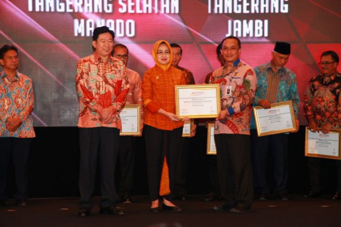 Jakarta,Katakota.com- Kota Tangerang Selatan menjadi salah satu daerah yang mendapatkan penghargaan pada event Indonesia’s Attractiveness Award (IAA) 2017 yang diselenggarakan pada hari Jumat,(29/9/2017).di Hotel The Westin, kuningan Jakarta.Kota Tangerang Selatan mendapatkan dua penghargaan yaitu sebagai salah satu Kota Terbaik dan sebagai Kota Potensial Kategori Investasi.Penghargaan diterima langsung oleh Walikota Tangerang Selatan Airin Rachmi Diany.