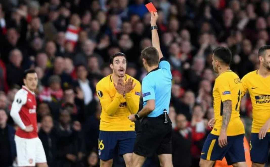 Saat laga memasuki menit 9, Sime Vrsaljko menerima kartu kuning kedua sekaligus kartu merah karena menginjak kaki Alexandre Lacazette. Kini Atleti terpaksa bermain hanya dengan 10 orang saja.
