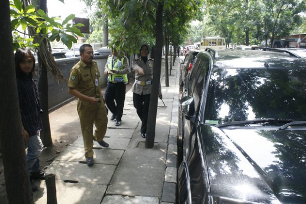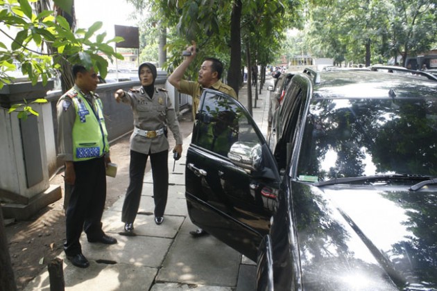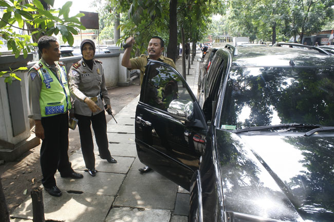 Oknum Pegawai Negeri Sipil (PNS) mengamuk saat di tilang anggota polisi dari satuan lantas metro kota Tangerang di depan kantor Dinas Pendidikan, Tangerang, Banten, Rabu (27/1). Tindakan tegas dari polisi saat melakukan penertiban kendaraan yang parkir tidak pada tempatnya itu, membuat salah satu oknum PNS mengamuk dan mengeluarkan kata-kata kasar kepada Polisi. Foto: KataKota/Ist/Fajrin