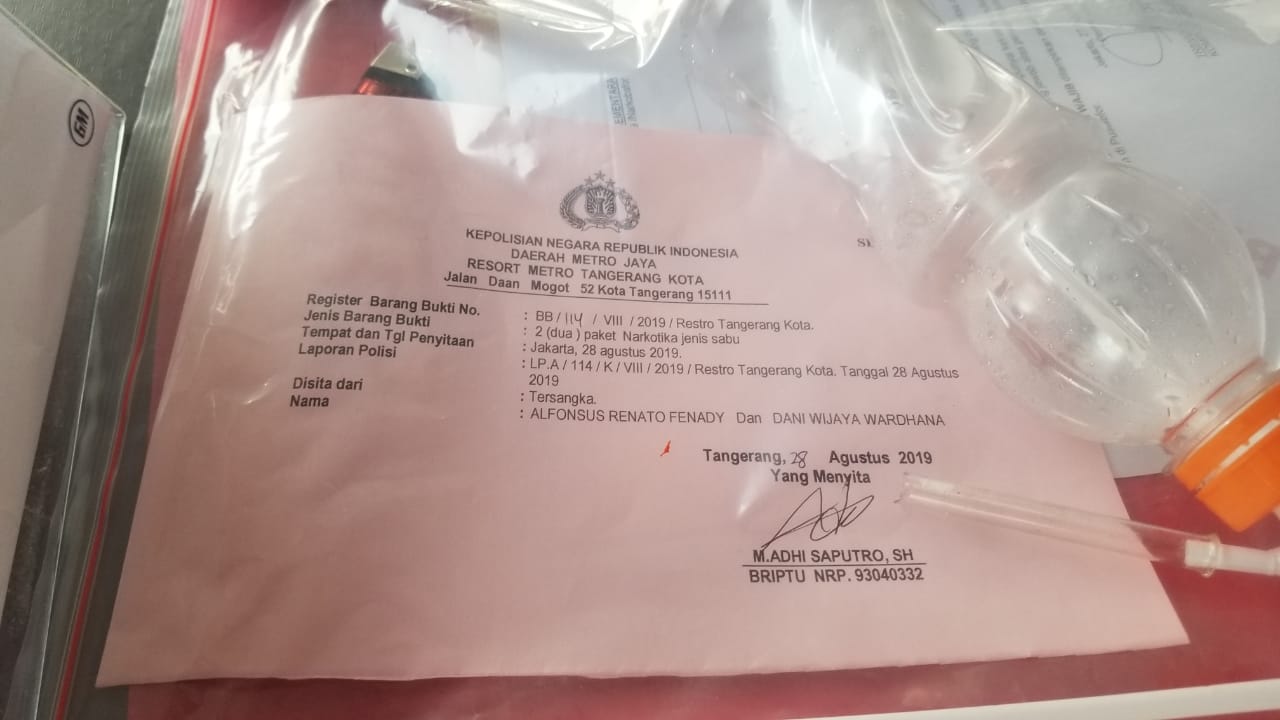 Kapolres Metro Tangerang Kota Kombes Abdul Karim mengatakan, keduanya ditangkap di sebuah indekos, Jalan Salemba Tengah, Jakarta Pusat pada Minggu (25/8/2019). Mereka diamankan setelah petugas mendapatkan informasi dari masyarakat terkait peredaran sabu di kawasan Cipadu, Kota Tangerang.