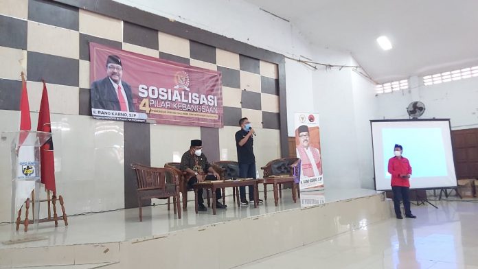 TANGERANG – Anggota MPR/DPR RI Fraksi PDIP, Rano Karno menggelar Sosialisasi 4 Pilar Kebangsaan di Gedung Aula DPD KNPI Kota Tangerang, Jalan Dimyati Kelurahan Sukasari, Kecamatan Tangerang, Banten, Sabtu (17/04/2021).