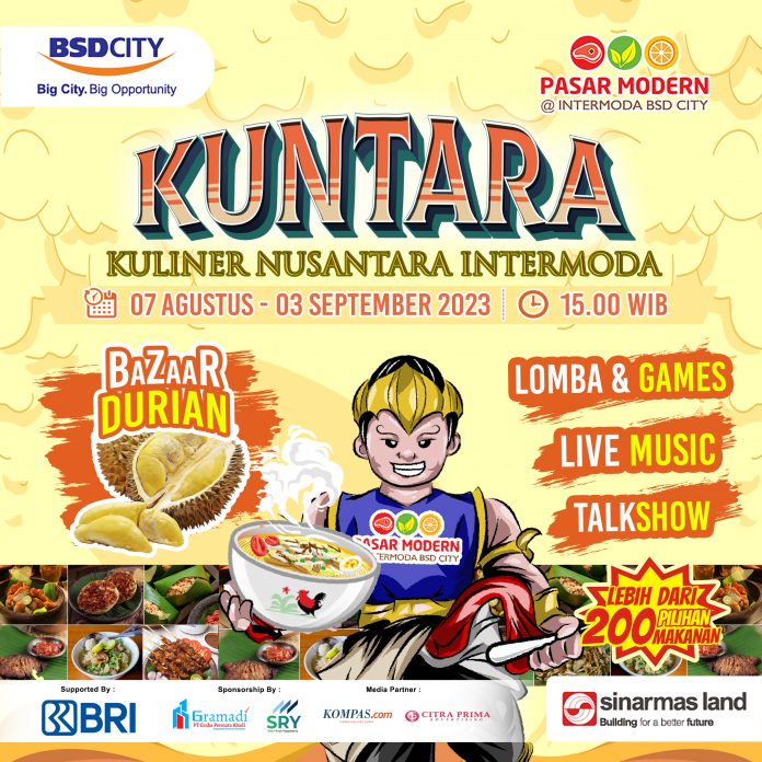Township Management Department Head Sinar Mas Land – Judy Kurniawan Halim mengatakan, Pasar Modern Intermoda BSD City berupaya untuk memfasilitasi alternatif destinasi wisata kuliner untuk masyarakat terutama bagi para penghuni/warga BSD City melalui Festival KUNTARA. Kehadiran Festival KUNTARA dapat memberikan pengalaman baru kepada masyarakat untuk mencicipi kuliner asli Nusantara, ratusan tenant makanan telah siap memanjakan lidah pengunjung dengan makanan yang otentik, segar, dan berkualitas. “Festival juga dapat menjadi wadah silaturahmi antar warga BSD City untuk bernostalgia mengenang beragam kuliner otentik Indonesia yang sudah jarang mereka temukan.” ujar Judy dalam keterangannya.