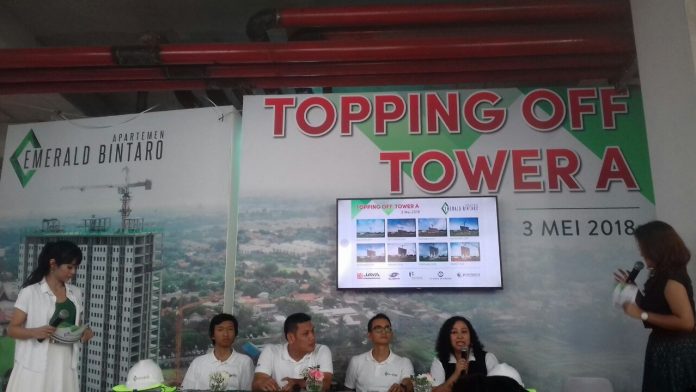 Tangsel, Katakota.com– Apartemen Emerald Bintaro Topping Off Tower A pada Kamis (3/5). Progres ini menunjukan komitmen pengembang PT Jaya Real Property untuk menyelesaikan tepat waktu sesuai jadwal dan kualitas yang telah dijanjikan kepada konsumen.