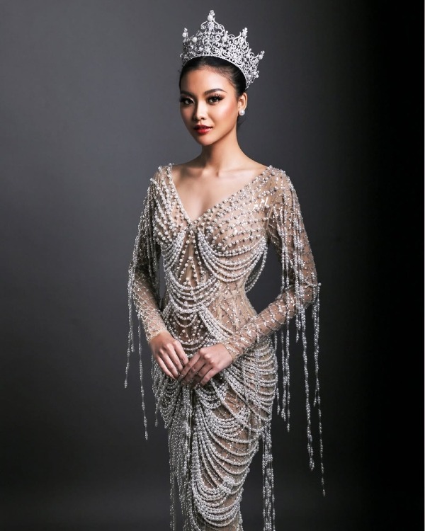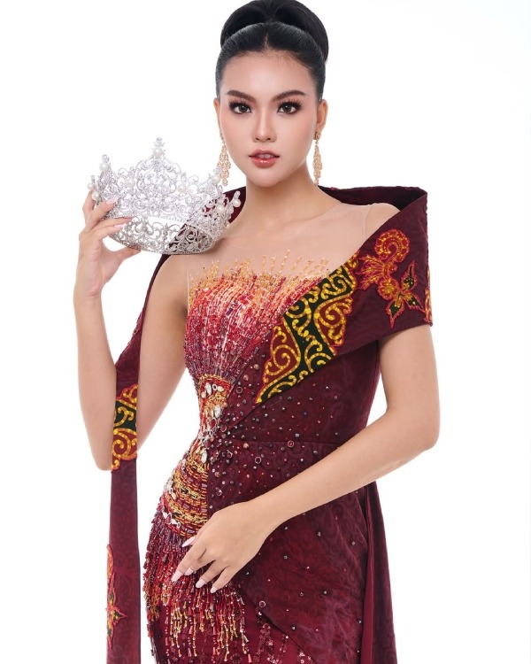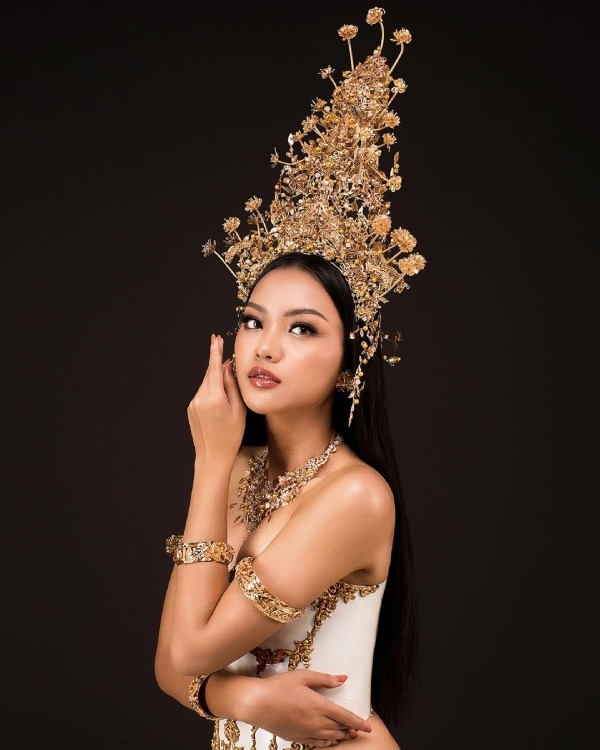 5. Tampil dalam riasan bernuansa hangat dengan ornamen hiasan kepala yang meriah
