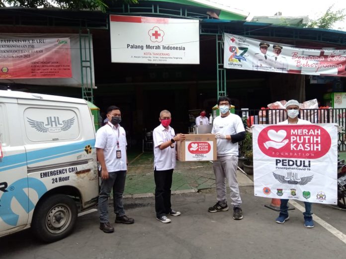 TANGERANG, Katakota.com –Palang Merah Indonesia (PMI) Kota Tangerang menerima bantuan alat pelindung diri (APD) dari JHL Group melalui Merah Putih Kasih Foundation.