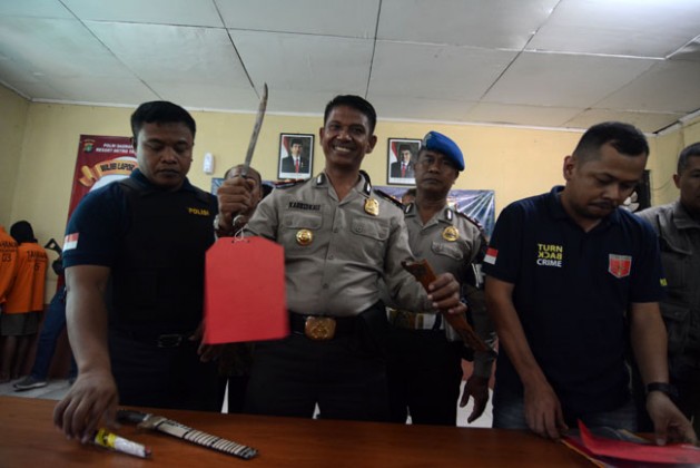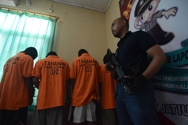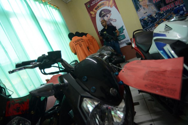Empat pelaku kejahatan begal motor diamankan kepolisian Polsek Jatiuwung, Tangerang, Banten, Jumat (29/1). Diamankan empat pelaku ini berinisial R, Y, RN, dan SY dan 3 motor hasil kejahatan.Foto:KataKota/Gendon