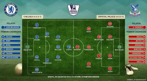 Chelsea (3-4-3): Thibaut Courtois; Cesar Azpilicueta, Andreas Christensen, Gary Cahill; Davide Zappacosta, Cesc Fabregas, N’Golo Kante, Marcos Alonso; Willian, Eden Hazard, Olivier Giroud. cadangan: Willy Caballero, Alvaro Morata, Pedro, Tiemoue Bakayoko, Victor Moses, Emerson, Ethan Ampadu.