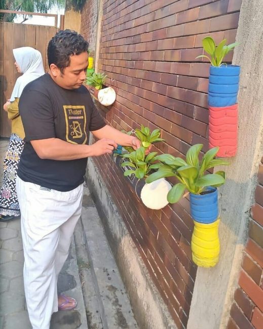 Di lahan pekarangan yang terbatas layaknya tipikal rumah perkotaan lain, Arief terhitung sangat cerdas dalam mengoptimalkan lahan pekarangan rumahnya menjadi media untuk bercocok tanam. Dengan memanfaatkan botol bekas minuman, Arief menanam beberapa jenis sayuran di botol yang ditempel di sepanjang pagar rumah. Bahkan pinggiran tembok pagar yang tidak begitu luaspun bisa disulapnya menjadi lahan tanaman labu dan oyong.