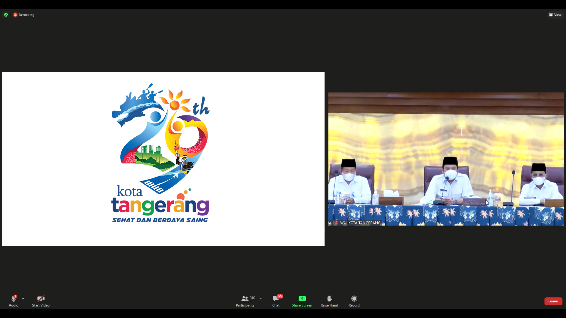Wali Kota Tangerang H. Arief R. Wismansyah meresmikan peluncuran Logo dan Tagline HUT Kota Tangerang ke-29 Tahun “Sehat dan Berdaya Saing” yang digelar secara virtual di Ruang Ahlakul Karimah Gedung Pusat Pemerintah Kota Tangerang, Rabu (2/2/2022).