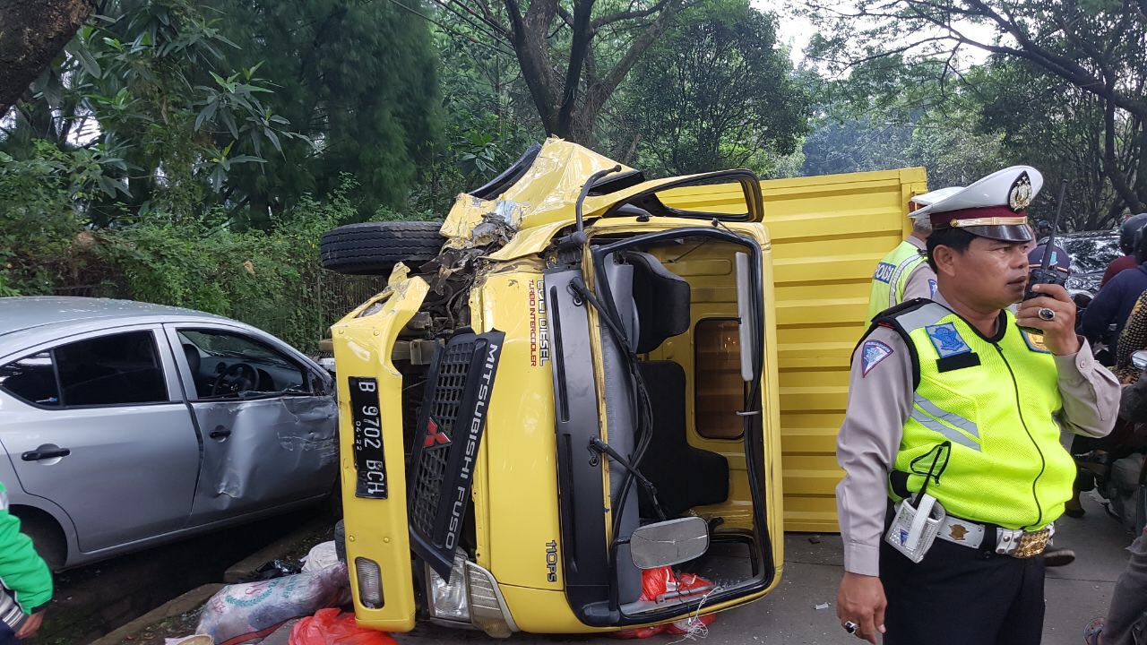 Mobil sedan nopol B 1297 SAO terpental diseruduk truk nopol B 9702 BCH hingga sekitar 5 meter. Bahkan di dalam mobil sedan ini berisikan satu keluarga.