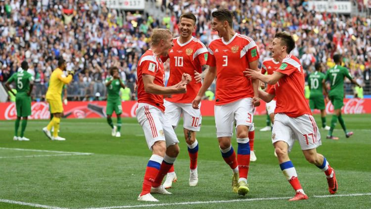 Berikut susunan pemain yang bermain di laga pembuka Piala Dunia 2018, Rusia vs Arab Saudi.