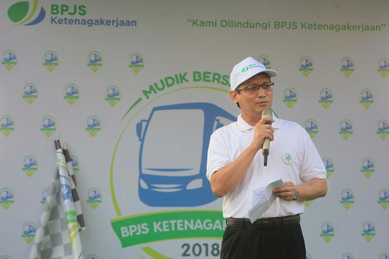 Direktur Umum dan SDM Naufal Mahfudz, didampingi Deputi Direktur Wilayah Banten Teguh Purwanto yang menghadiri prosesi pelepasan mudik bersama Tahun 2018 di Alam Sutera Tangerang menyampaikan kegiatan ini diselenggarakan sebagai agenda Tanggung Jawab Sosial (TJSL) BPJS Ketenagakerjaan.