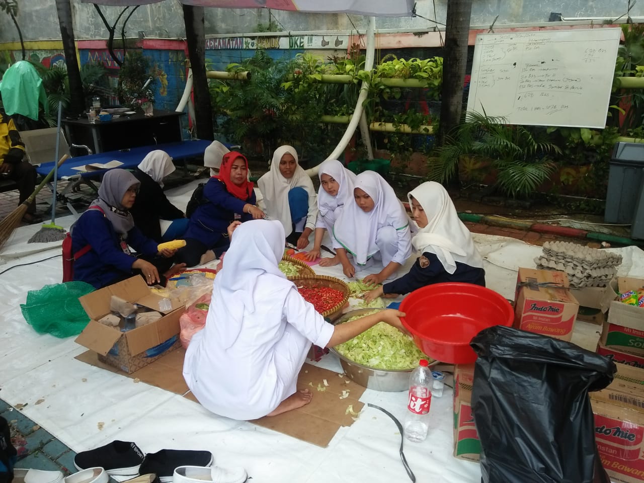 Dibantu tenaga dari para relawan Palang Merah Remaja (PMR) SMAN 9, dapur tersebut dapat mengolah ribuan jenis makanan.