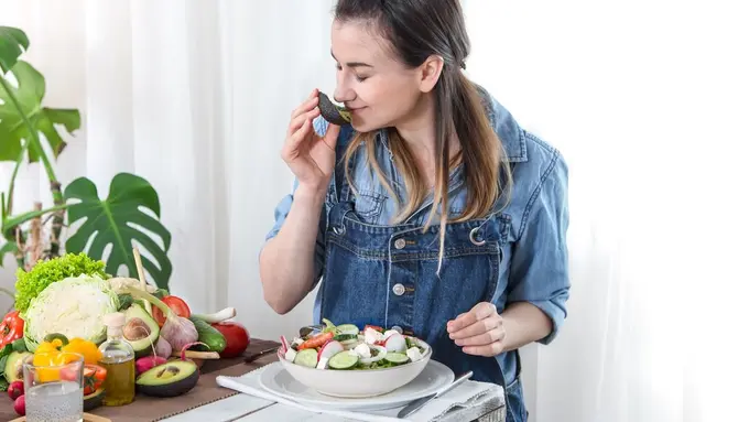 Kurangi porsi makan sekitar 10-20%. Makan lebih perlahan (minimal 20 menit) agar otak mengenali sinyal kenyang, mencegah makan berlebihan. Hindari makan terburu-buru.