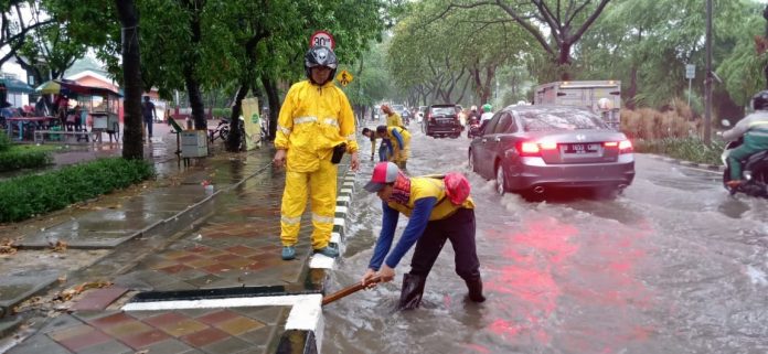 “Kalau hujan deras begini kan banyak sampah yang terbawa ke drainase, makanya itu kita langsung bersihkan,”