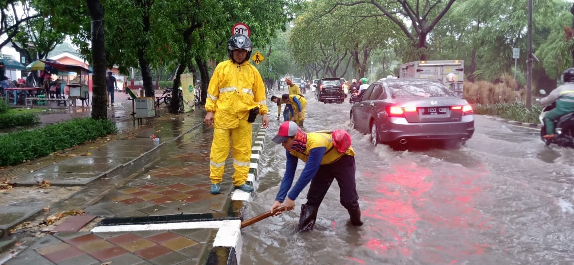 Agus menjelaskan bahwa pihaknya langsung menerjunkan 60 petugas untuk menangani genangan yang ada. 60 petugas tersebut langsung disebar ke beberapa titik genangan terutama jalan-jalan protokol.