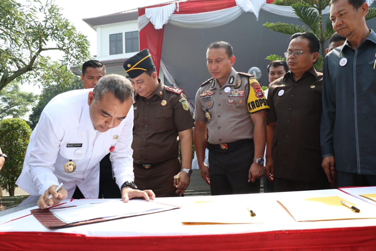 Tangerang, Katakota.com – Pembangunan zona integritas (ZI) menuju Wilayah bebas dari korupsi (WBK) dan wilayah birokrasi bersih melayani (WBBM) di canangkan langsung oleh Kepala Kejaksaan Negri Kabupaten Tangerang Zulbahri. di saksikan oleh Bupati Tangerang A Zaki Iskandar, Ketua DPRD Kabupaten Tangerang, Kapolresta, Kepala Rutan Jambe dan Sekda Kabupaten Tangerang, Rabu (27/2/2019).
