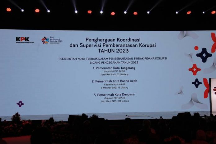 Katakota- Pemerintah Kota (Pemkot) Tangerang baru saja berhasil memperoleh Penghargaan Koordinasi dan Supervisi Pemberantasan Korupsi Tahun 2023 kategori Pemerintah Kota Terbaik dalam Pemberantasan Tindak Pidana Korupsi Bidang Pencegahan dengan capaian Monitoring Center for Prevention (MCP) tertinggi di antara seluruh kota se-Indonesia yakni 88,56 dengan Sertifikat Badan Milik Daerah (BMD) terbanyak yakni 322 bidang.