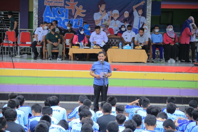 “Kalian semua harus sehat, karena kalian adalah generasi penerus kami dan harapan bangsa,” pesan Sachrudin kepada ratusan siswa SMP yang mengikuti Aksi Bergizi 2022.