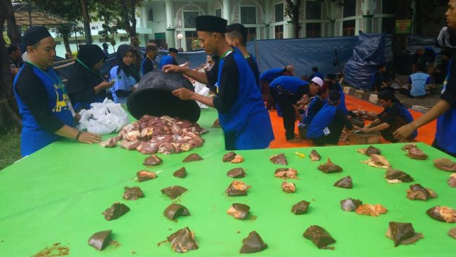“Alhamdulillah Idul Adha tahun ini jumlah orang yang menitipkan hewan mengalami peningkatan jumlah, 36 ekor sapi dan 16 ekor kambing. Dan kami telah sebar kurang lebih 3000 kupon dan akan kami distribusikan siang ini,” ujar sekda Dadi Budaeri.