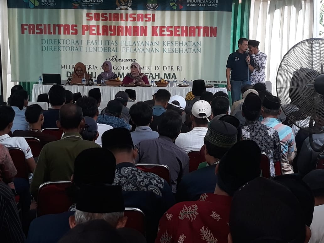 Tangerang, Katakota.com – Anggota DPR RI komisi lX, Fraksi PKB, Siti Masrifah menggelar sosialisasi fasilitas pelayanan kesehatan, di Desa Babakan Asem, Kecamatan Teluknaga, Kabupaten Tangerang, Rabu, (7/11/2018).