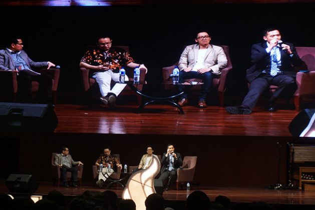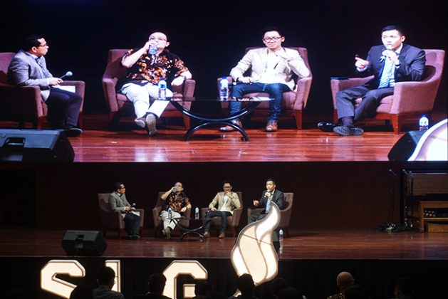 Ahli Perancangan Kebijakan Publik Dr. Jerry Sambuaga (kiri), Praktisi Industri Kreatif Reza Sadha (tengah), dan Ahli Ketahanan Ekonomi Wibawanto Nugroho (kanan) menjadi narasumber di Student Leaders Gathering 2017, Universitas Pelita Harapan, Karawaci, Sabtu (20/5/2017). Student Leaders Gathering 2017 kali ini mengangkat tema Peran Strategis Pemuda Indonesia Dalam Mengembangkan Ekonomi Kreatif. Acara ini memfasilitasi mahasiswa ikut serta dalam pengembangan ekonomi kreatif yang menjadi pilar penunjang ekonomi Indonesia. Eky/KataKota