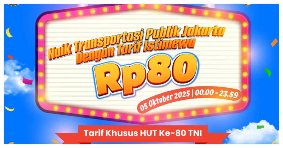“Kado spesial HUT TNI Ke-80! Ayo semarakan HUT TNI dengan keliling Jakarta seharga Rp 80 pada tanggal 5 Oktober 2025!,” tulis informasi yang dikutip dari akun Instagram @dishubdkijakarta, Kamis (2/10/2025).