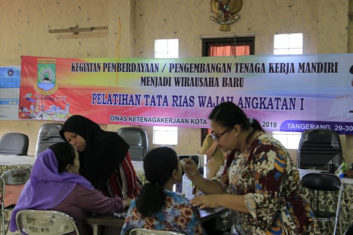 Tangerang, Katakota.com – Upaya meningkatkan pemberdayaan serta pengembangan tenaga kerja mandiri menjadi wirausaha baru, Dinas Ketenagakerjaan Kota Tangerang mengadakan pelatihan tata rias wajah.