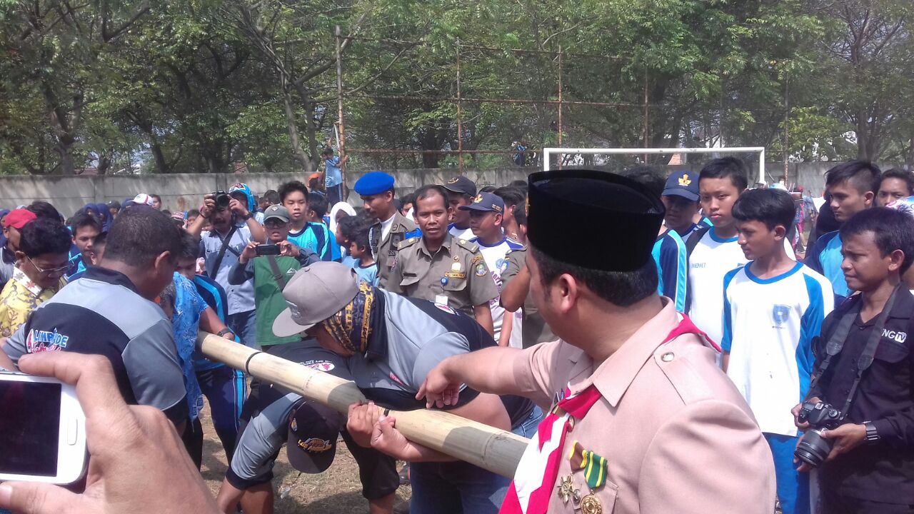 Keduanya berebut kemenangan saat mencoba pertandingan Dagongan pada Olimpiade Olahraga rekreasi dan tradisonal yang digelar Dinas Pemuda dan Olahraga bersama Federasi Olahraga Rekreasi Masyarakat Indonesia (FORMI) Kota Tangerang.