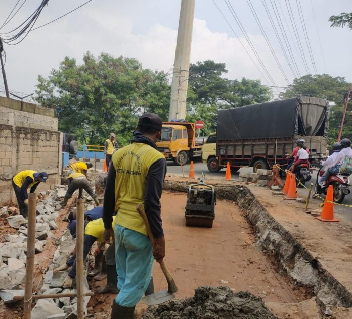 Tangerang – Jalan Sangego Kota Tangerang amblas sudah hampir dua pekan ini. Dinas PUPR Kota Tangerang pun bereaksi cepat melakukan perbaikan di lokasi tersebut.