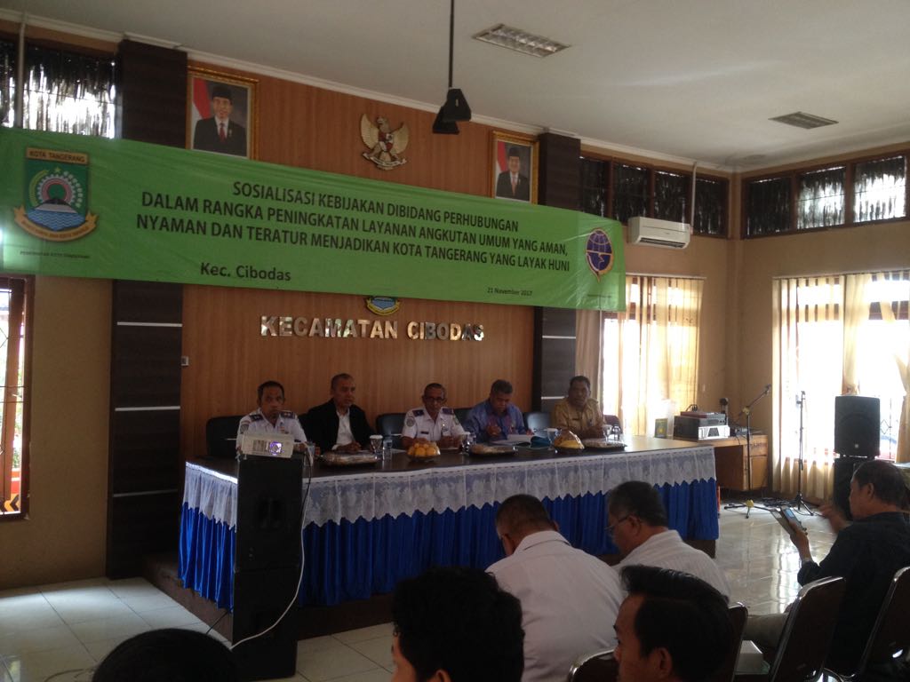 Tangerang,Katakota.com- Dinas perhubungan Kota Tangerang menggelar sosialisasi kebijakan pelaksanaan layanan angkutan umum Trans Tangerang koridor 2 jurusan Terminal Cibodas-Terminal Poris Plawad. Di Aula Kecamatan Cibodas, Selasa (21/11/2017).