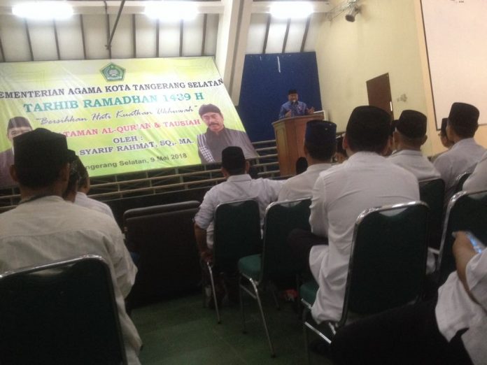 Hal tersebut disampaikan saat Tarhib Ramadan dan khataman Al Quran Kemenag Tangsel, Rabu (9/5) di Aula MAN Insan Cendekia, Serpong.