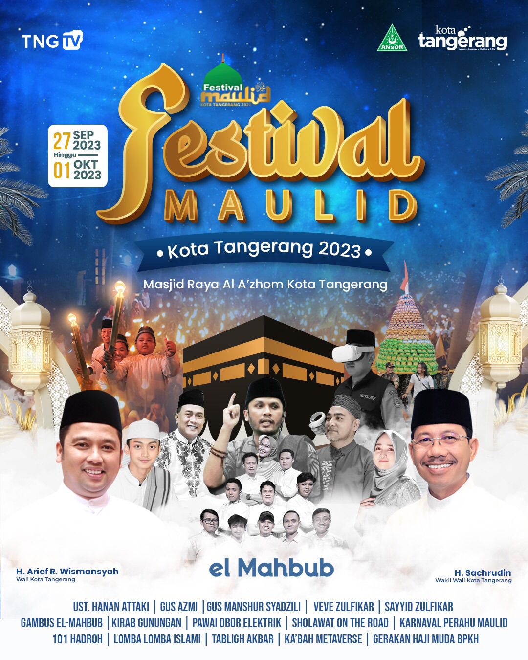 Katakota- Dalam rangka menyambut Maulid Nabi Muhammad SAW yang jatuh pada 27 September 2023, Pemerintah Kota (Pemkot) Tangerang melalui Dinas Pemuda dan Olahraga (Dispora) akan segera kembali mengadakan Festival Maulid 2023. Berbagai pengisi acara juga akan memeriahkan Festival Maulid 2023 di antranya adalah Ust. Hanan Attaki, Gus Azmi, Gus Manshur Syadzihli, hingga Gambus el Mahbub.