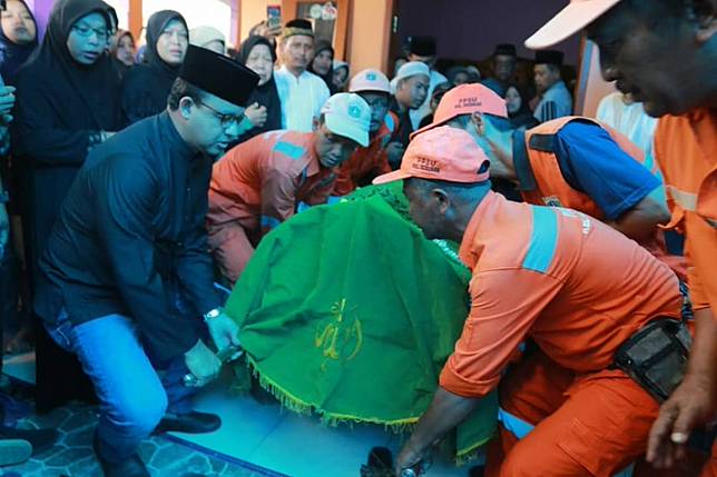 6. Kesedihan begitu terpancar dari raut wajah Anies Baswedan saat menggotong jenazah Naufal.