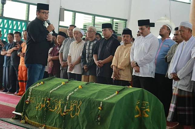 5. Anies Baswedan menyampaikan duka mendalamnya di hadapan para melayat.